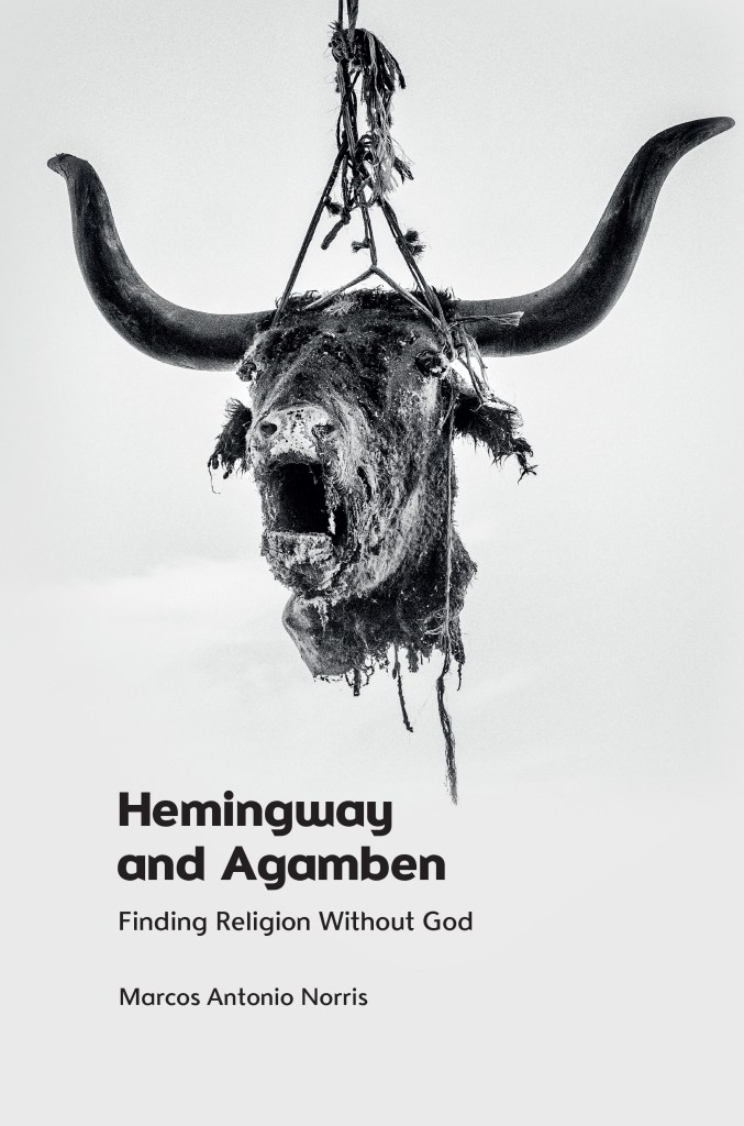 My second book, Hemingway and Agamben: Finding Religion Without God (2023), builds on Agamben and the Existentialists to resolve a longstanding debate over Hemingway’s religious beliefs. Scholars have depicted Hemingway as either a devout Roman Catholic or as a secular existentialist. I argue, however, that Hemingway was simultaneously religious and nonreligious, a secularized theist who, like his friend Jean-Paul Sartre, imbued sovereign choice with divine authority. The dehumanizing effects of war convinced Hemingway of God’s death by reducing mankind to an animal shorn of the imago Dei. But Hemingway arrives at this conclusion only to rebel against it, affirming the superiority of human life through the ritualistic killing of dangerous animals. This sovereign act of domination resurrects the imago Dei in Hemingway’s mind by transforming an ideological construct—namely, human identity—into an ontological essence. This ontological essence ensures the objective moral value of human life, which, in turn, provides the basis for a prescriptive moral code. Hemingway and Agamben concludes that moral absolutes designed to protect human rights are, in fact, the tools of sovereign domination, not of social justice. One cannot recognize human rights as an intelligible concept, I argue, without first enforcing a cognitive distinction between humans and nonhumans, who are subsequently deprived of the same rights. As Agamben argues in “Beyond Human Rights” (1993), social justice is only ever achieved at the expense of nonhumanity.